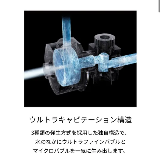 シャワーヘッドからブクブクと泡立つように出てくる水流が頭皮をリズミカルに刺激し、特異的な洗浄メカニズムを持つ