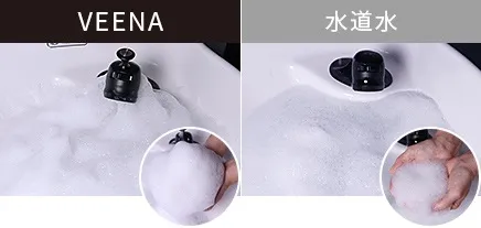 シャンプー台に取り付けることで、微細な気泡を含んだ水を作り出し、髪や頭皮の洗浄力を高めます。