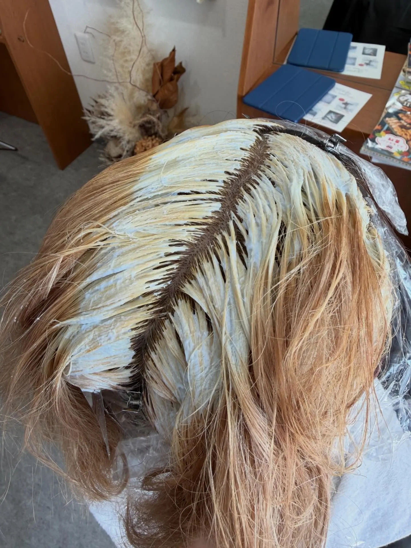ゼロテク施術の最大の特徴は、カラー剤が頭皮に触れないように塗布する点です。専用のコームやブラシを使い、髪の根元ギリギリで薬剤をコントロールすることで、頭皮へのダメージを防ぎます。
