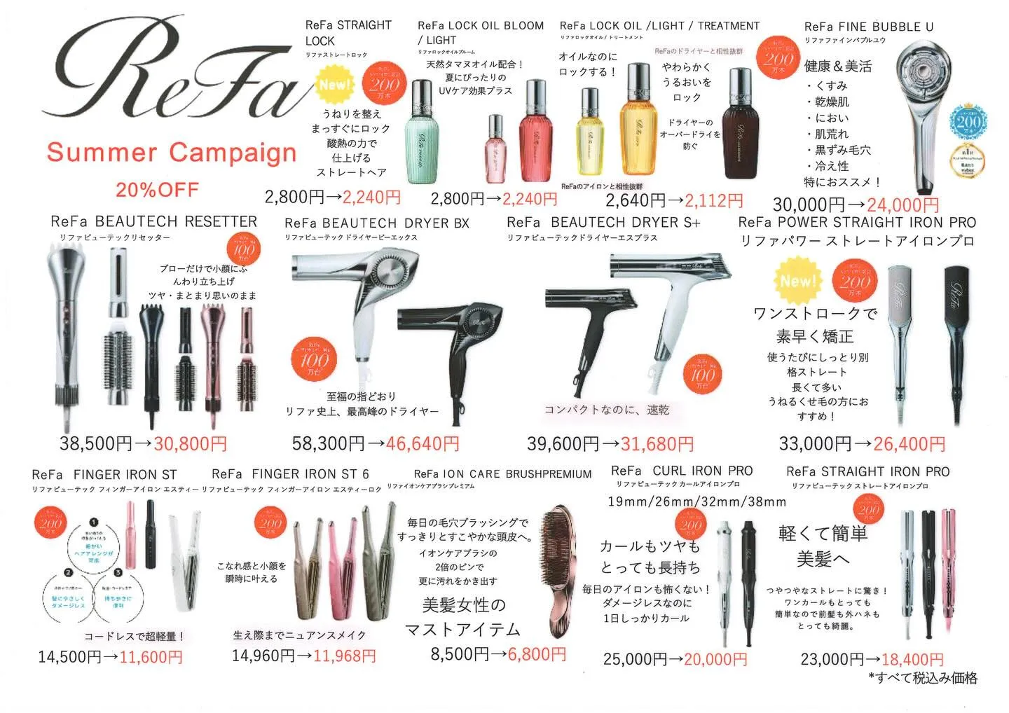 只今リファ商品をご予約頂くと20%OFFのキャンペーン中☘︎